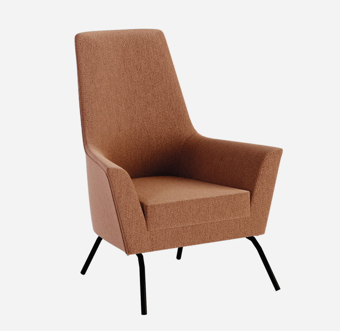 • Butaca de respaldo alto curvado y brazos integrados, un diseño moderno y elegante, adaptable a cualquier espacio.