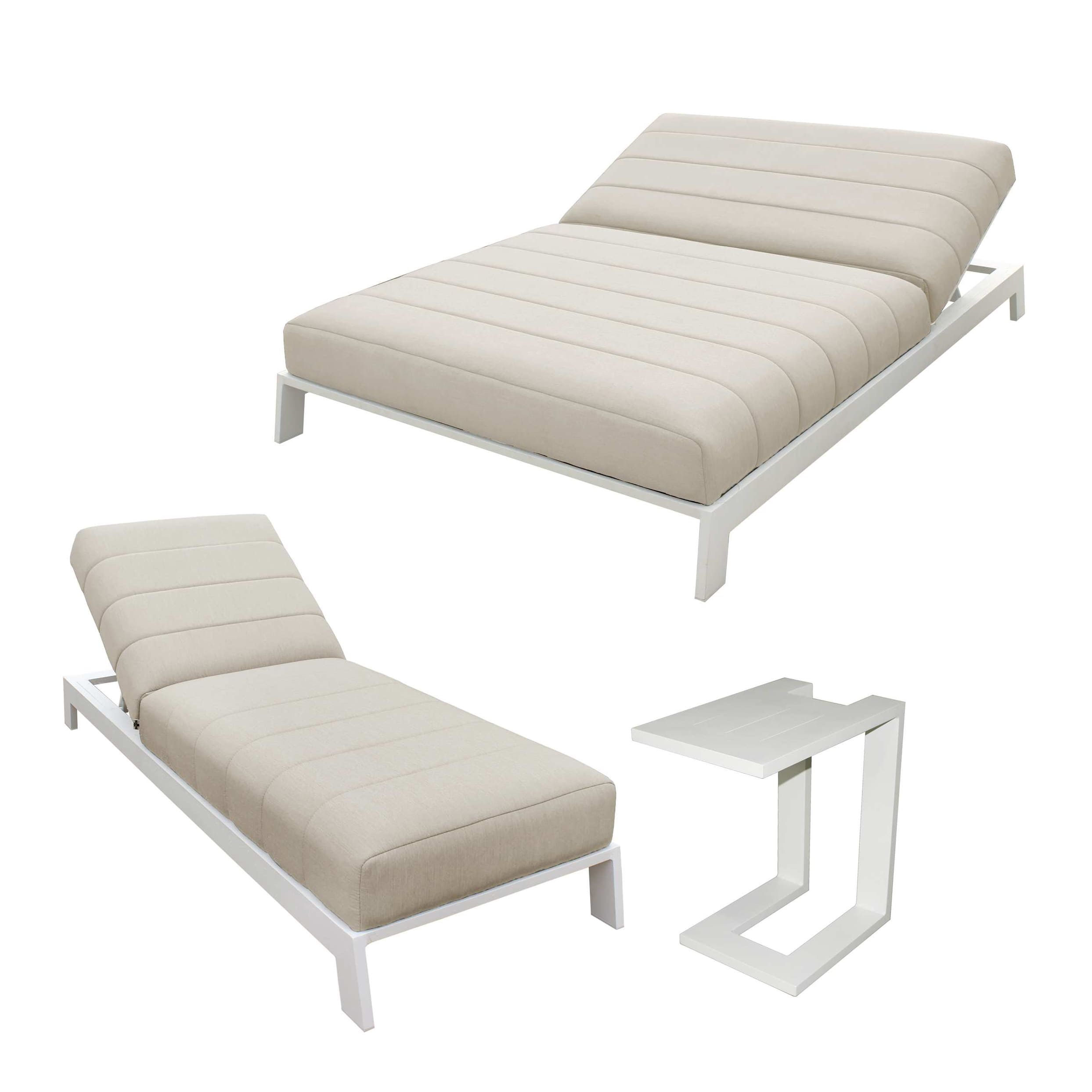- Estructura de aluminio color Blanco o Negro y tapizado Gris.